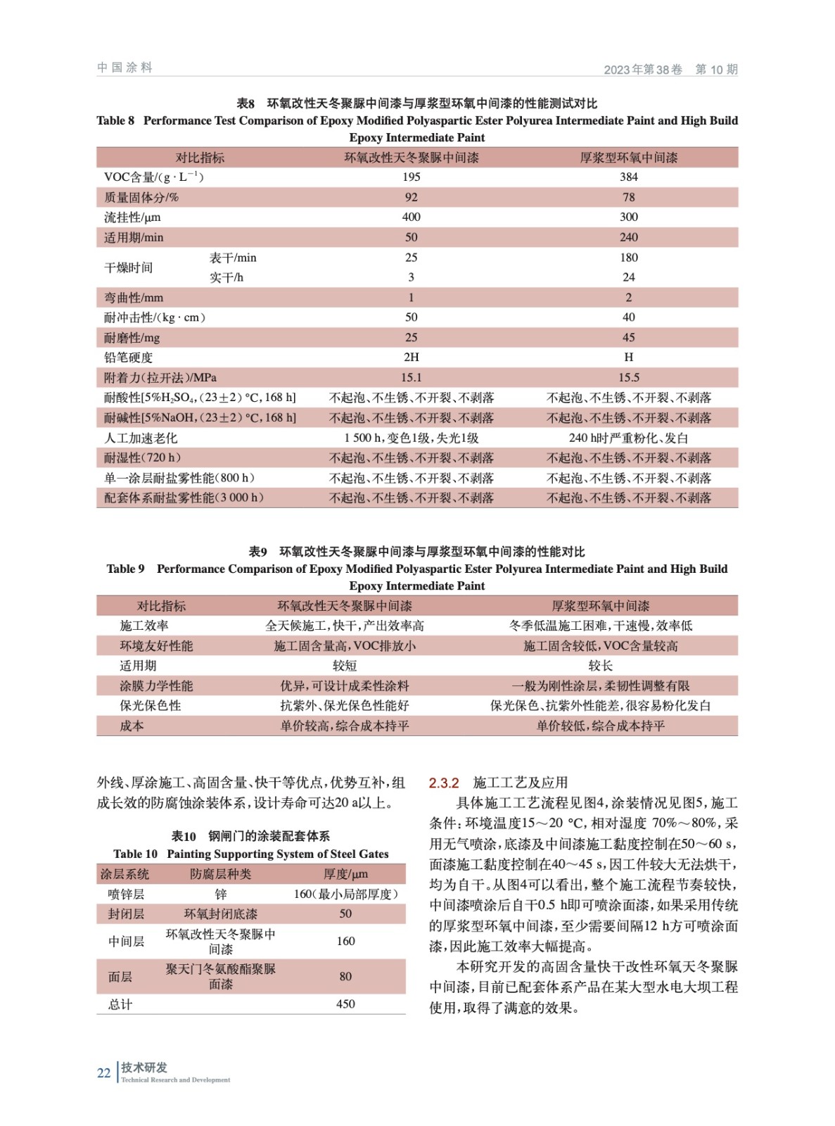 水電大壩鋼閘門用天冬聚脲中間漆的研制及應(yīng)用