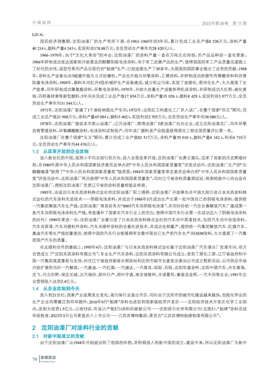 簡要介紹了沈陽油漆廠的歷史發展脈絡,展示了從企業創立、歷史更迭到新中國成立、新中國建設、改革開放、行業貢獻等“船牌”涂料百年歷史滄桑演繹脈絡,僅以沈陽“船牌”涂料為例,從一個側面反映出近現代中國涂料的恢宏變遷史。