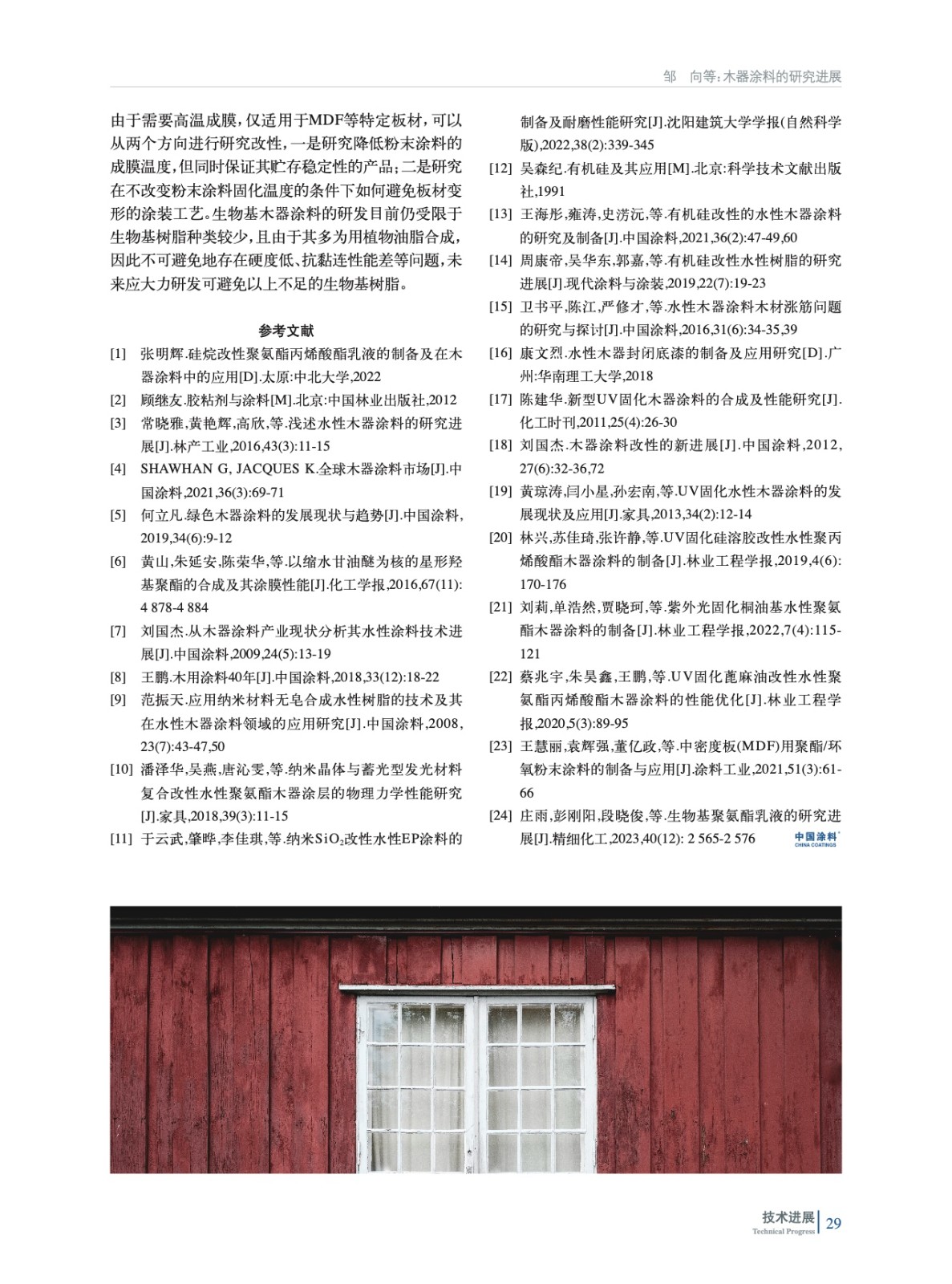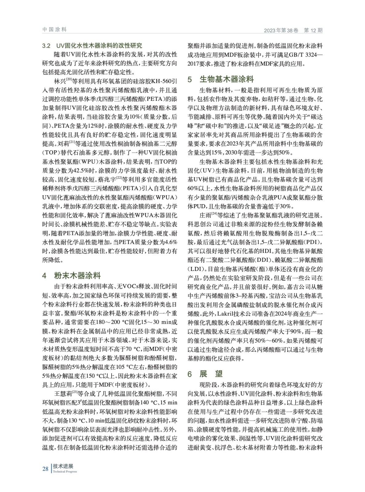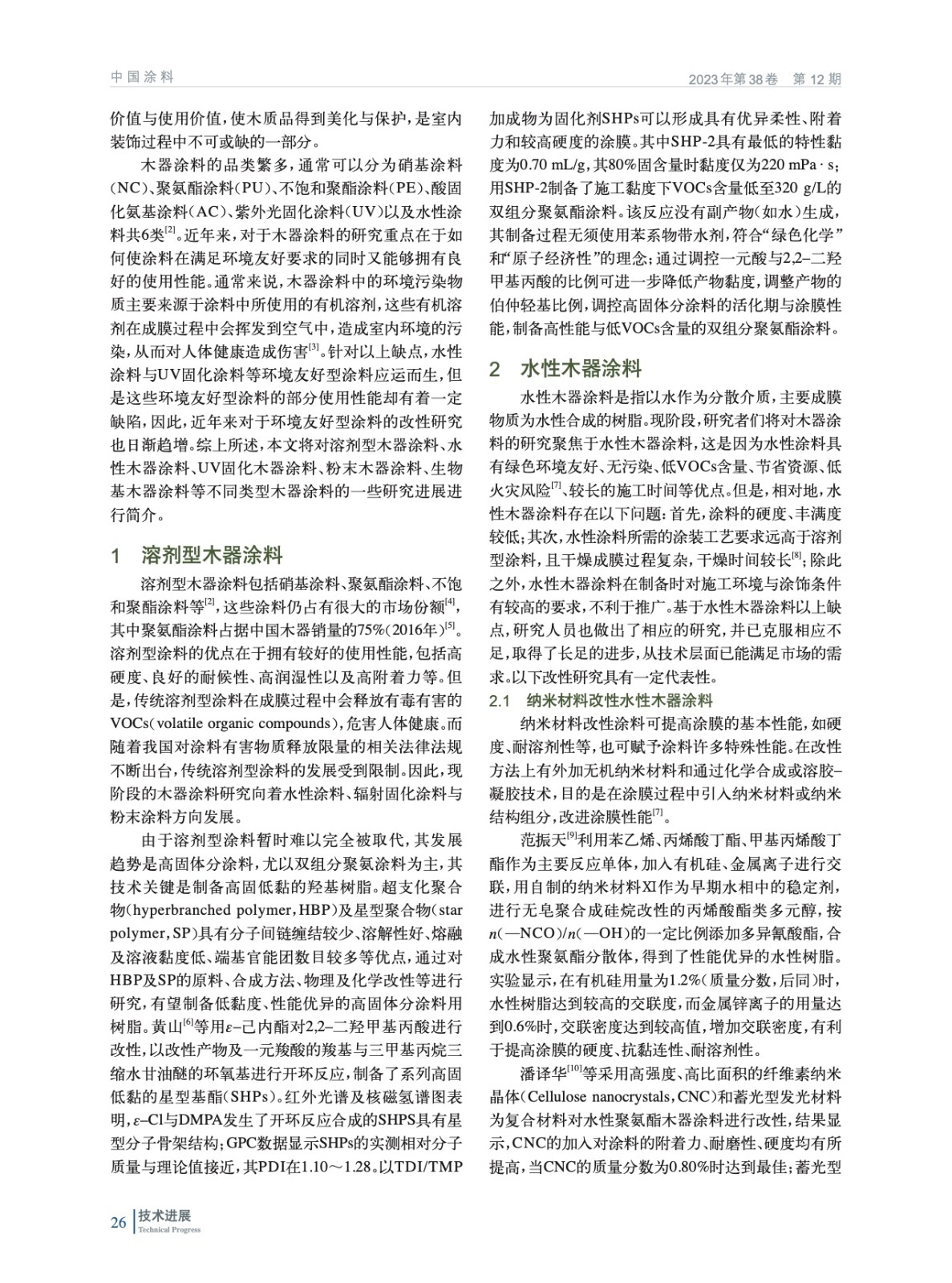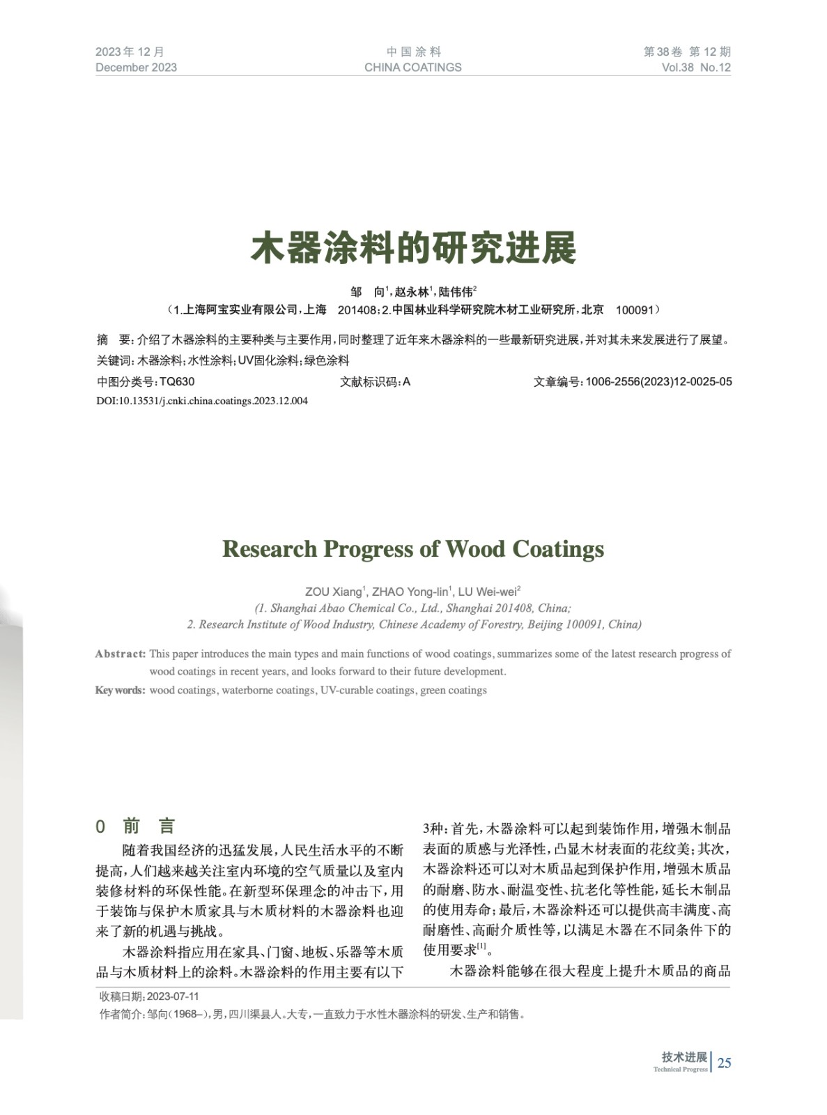 介紹了木器涂料的主要種類與主要作用,同時整理了近年來木器涂料的一些最新研究進展,并對其未來發(fā)展進行了展望。