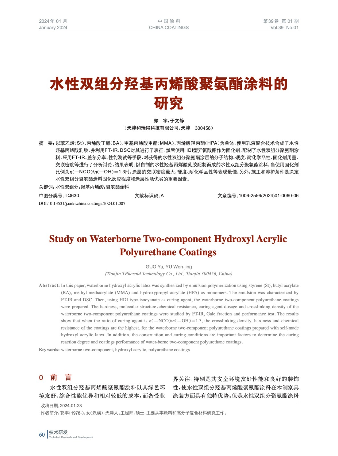 水性雙組分羥基丙烯酸聚氨酯涂料的研究