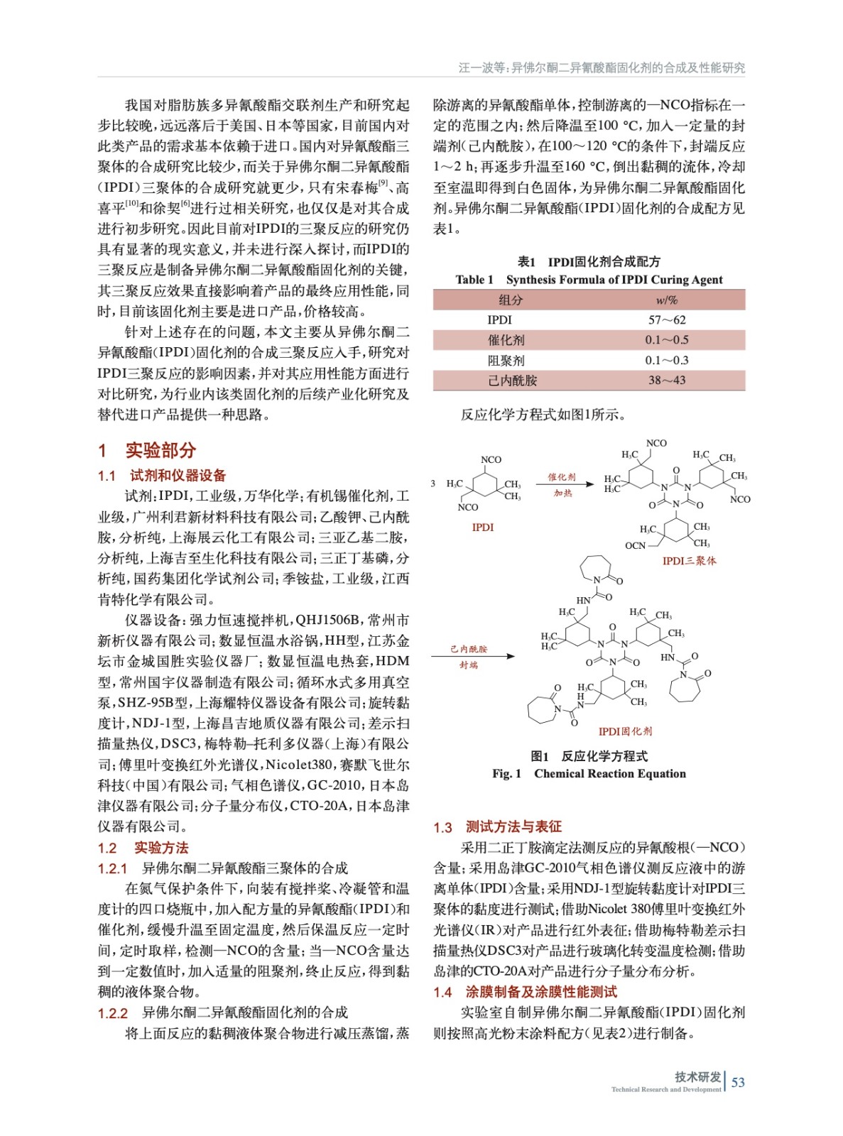 異佛爾酮二異氰酸酯固化劑的合成及性能研究