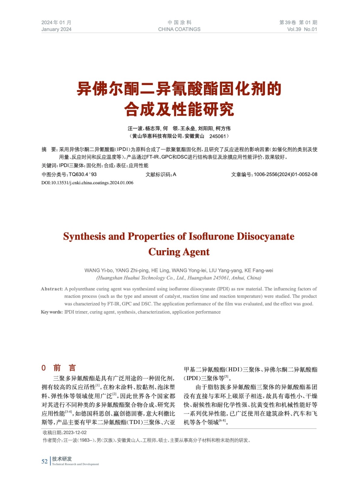 本文系作者@汪一波,楊志萍, 何 領,王永壘, 劉陽陽, 柯方偉 授權中國涂料網發表,并經中國涂料網編輯,未經允許不得轉載,如需轉載請聯系chinacoatingnet@vip.163.com