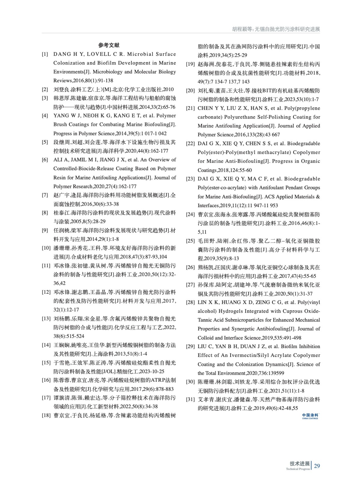 摘要:海洋污損生物附著問(wèn)題一直影響海洋運(yùn)輸與海洋工程行業(yè)的發(fā)展。為減輕海洋生物附著所帶來(lái)的困擾,防污涂料被廣泛應(yīng)用,而無(wú)錫自?huà)伖馔苛希═FSPC)因其卓越的防污性能和低毒性而成為防污涂料市場(chǎng)的主流產(chǎn)品。詳細(xì)探討了無(wú)錫自?huà)伖馔苛系墓ぷ鳈C(jī)理、成分組成以及目前的應(yīng)用狀況。