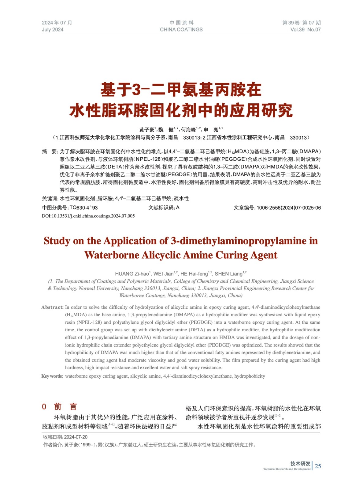 本文系作者@黃子豪,魏 健,何海峰,申 亮 授權中國涂料網發表,并經中國涂料網編輯,未經允許不得轉載,如需轉載請聯系chinacoatingnet@vip.163.com
