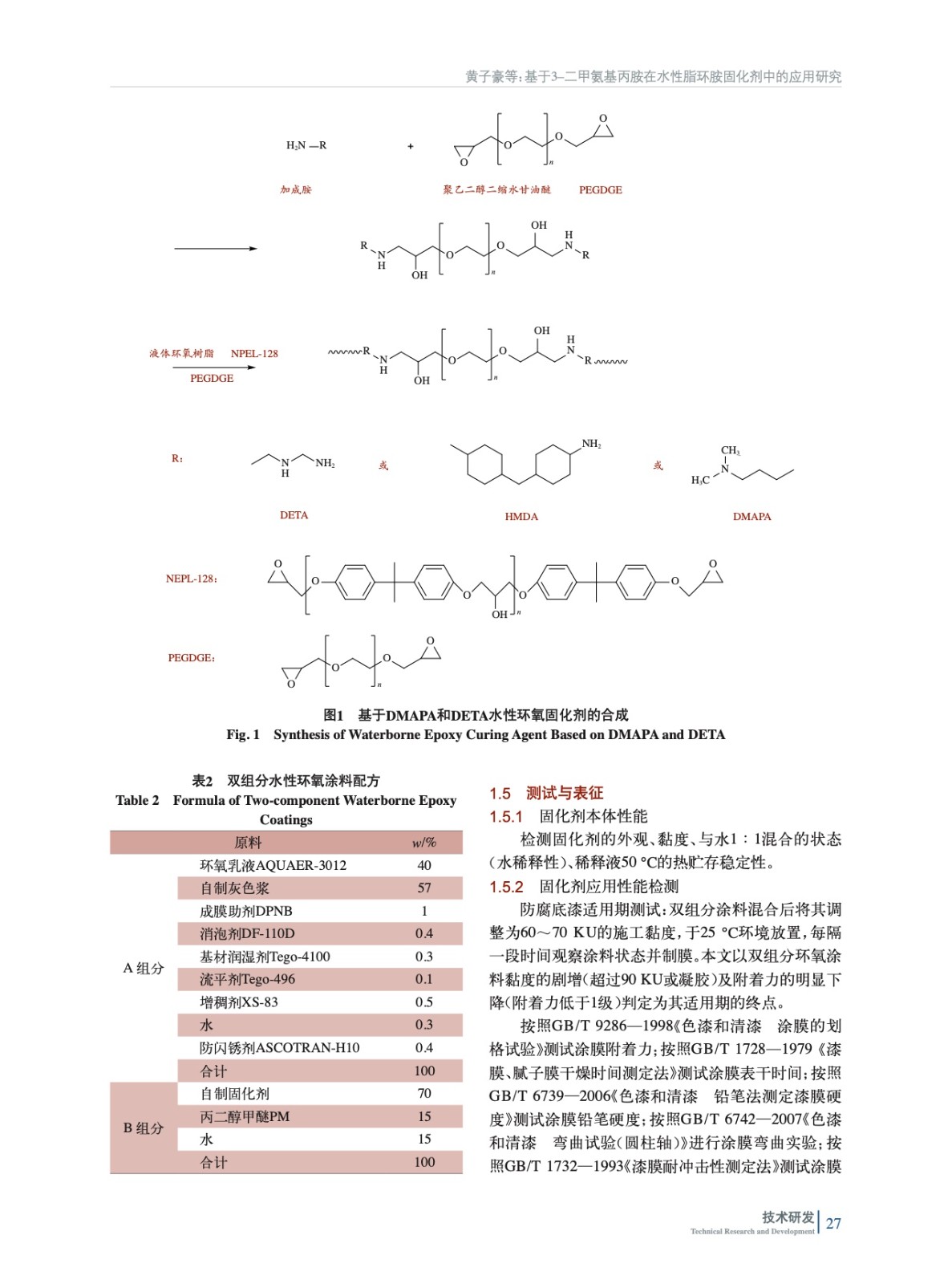 基于3–二甲氨基丙胺在水性脂環胺固化劑中的應用研究