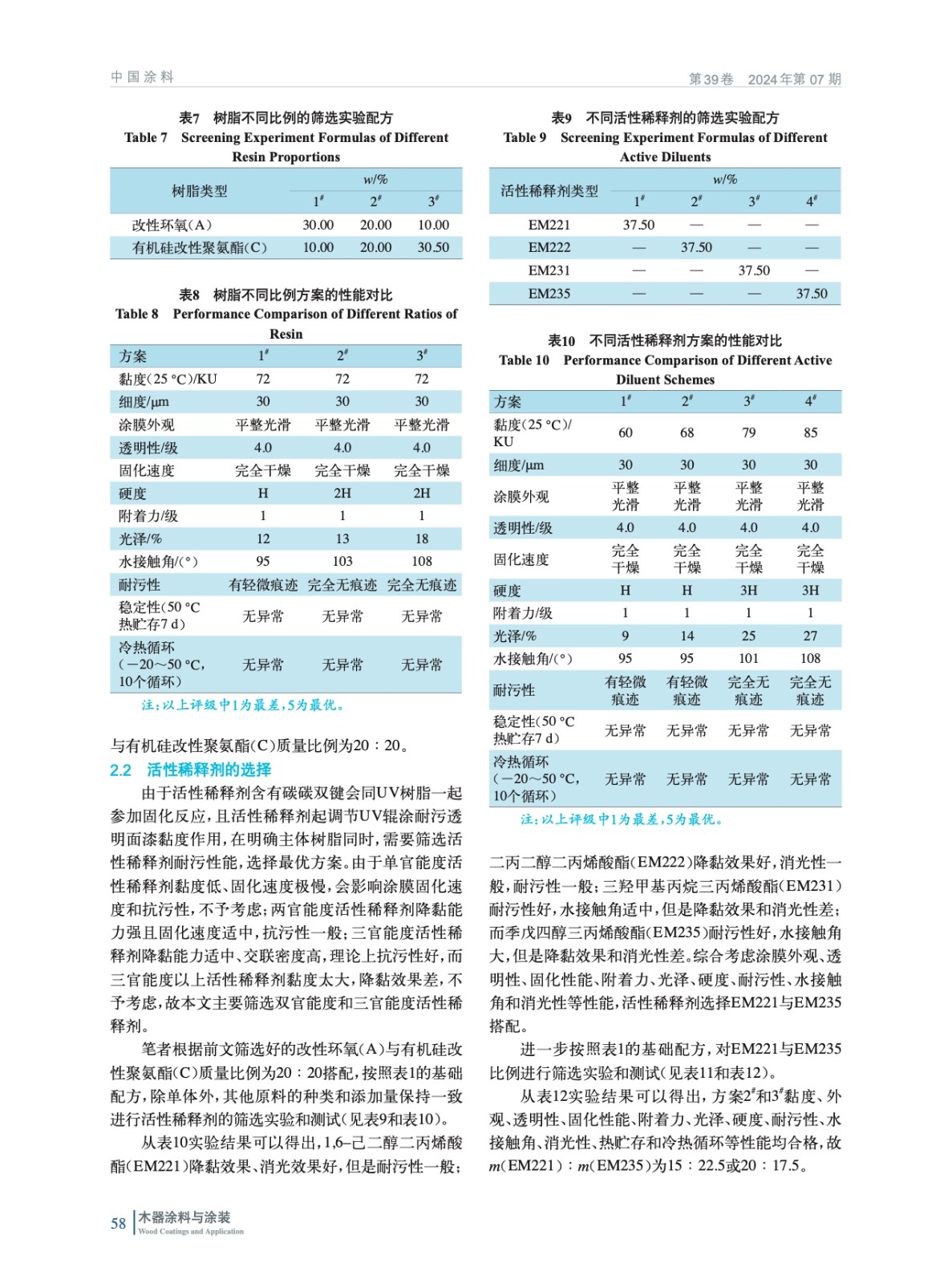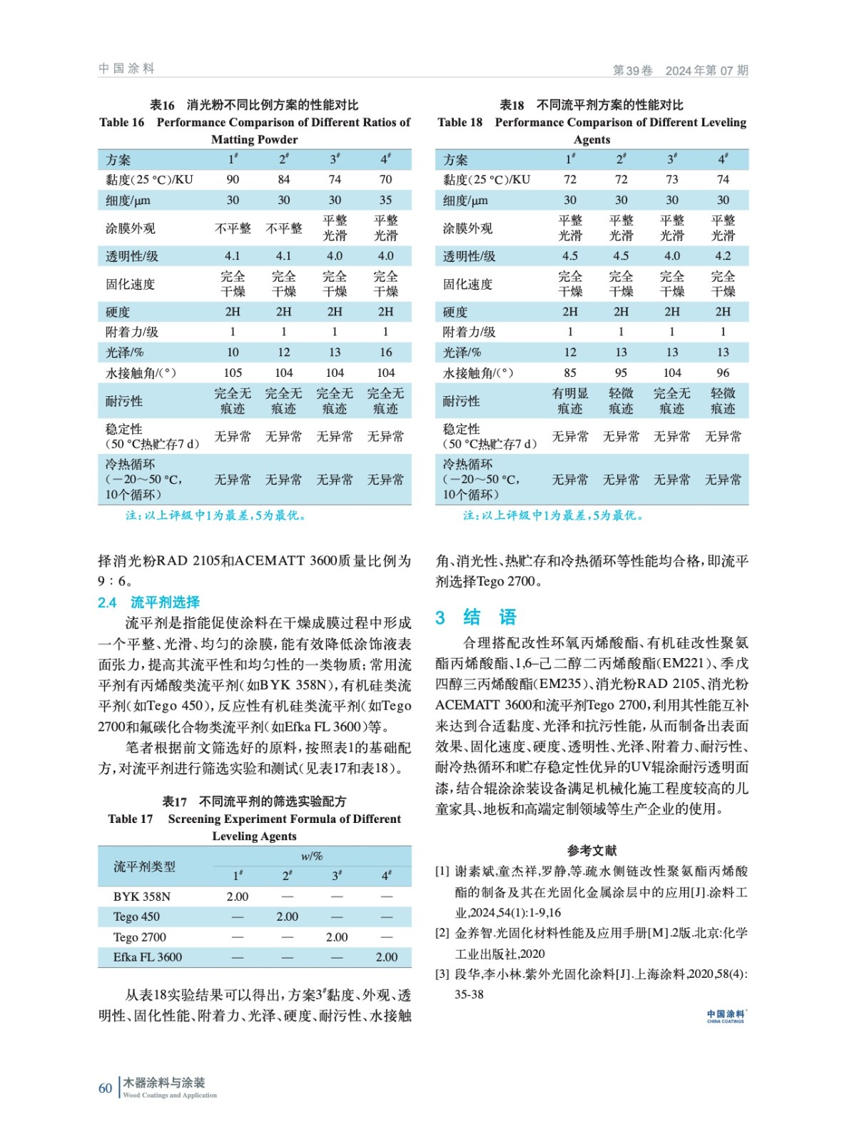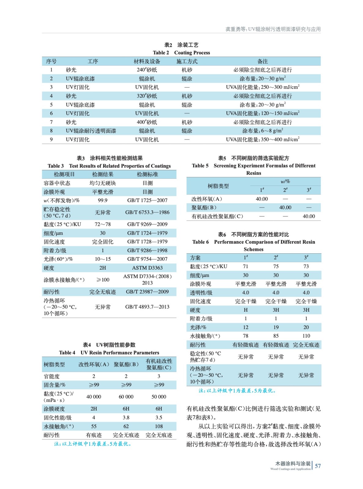 對UV輥涂耐污透明面漆,從UV樹脂、活性稀釋劑、消光粉和流平劑選擇等方面進行探討,通過實驗論證以及輥涂設備應用測試,驗證了其在工業化應用上的可行性。