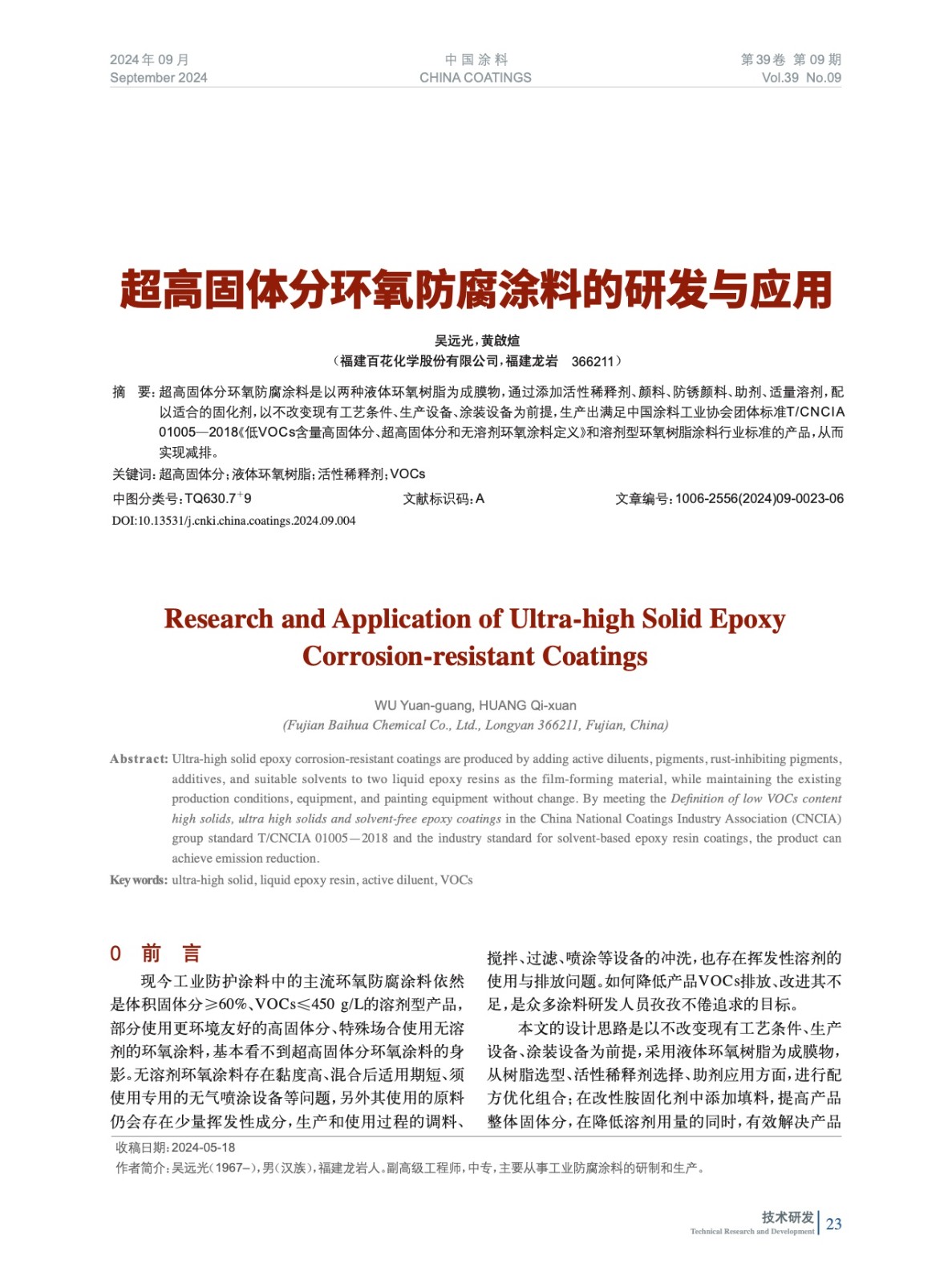本文系作者@吳遠光,黃啟煊 授權中國涂料網發表,并經中國涂料網編輯,未經允許不得轉載,如需轉載請聯系chinacoatingnet@vip.163.com