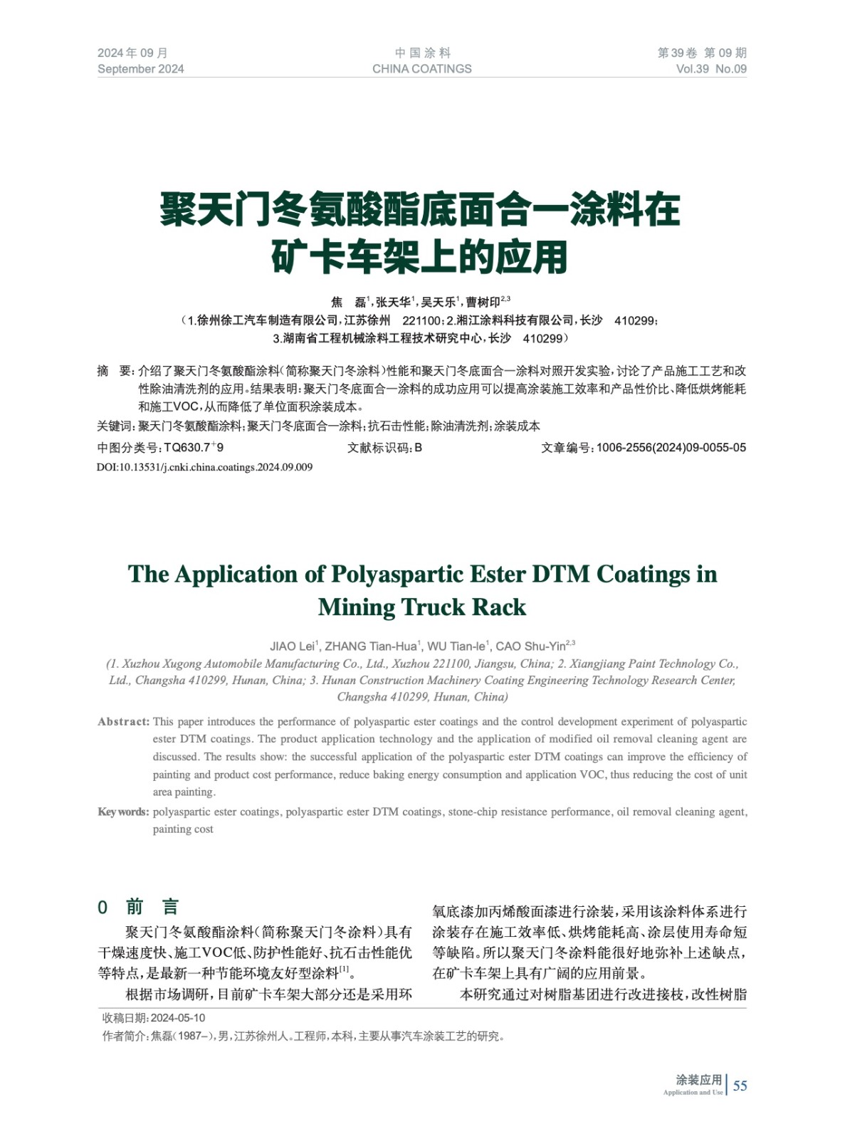 聚天門冬氨酸酯底面合一涂料在礦卡車架上的應用