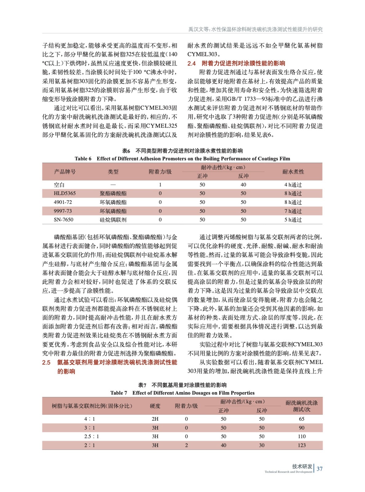 摘要:實驗對比了不同強度的洗碗機洗滌模式對保溫杯涂膜的破壞性,選擇了最嚴酷的微蒸汽洗滌模式來進行涂膜測試。通過篩選水性樹脂,選擇合適的附著力促進劑,搭配不同類型的氨基交聯劑以滿足不同固化溫度的工藝要求,最終優(yōu)化的水性保溫杯涂料耐水煮可以超過8 h,耐洗碗機洗滌測試超過100次,遠超行業(yè)同類產品技術水平。