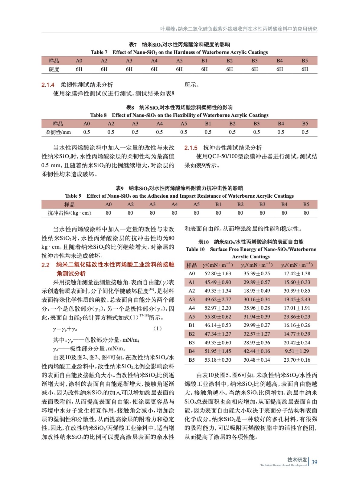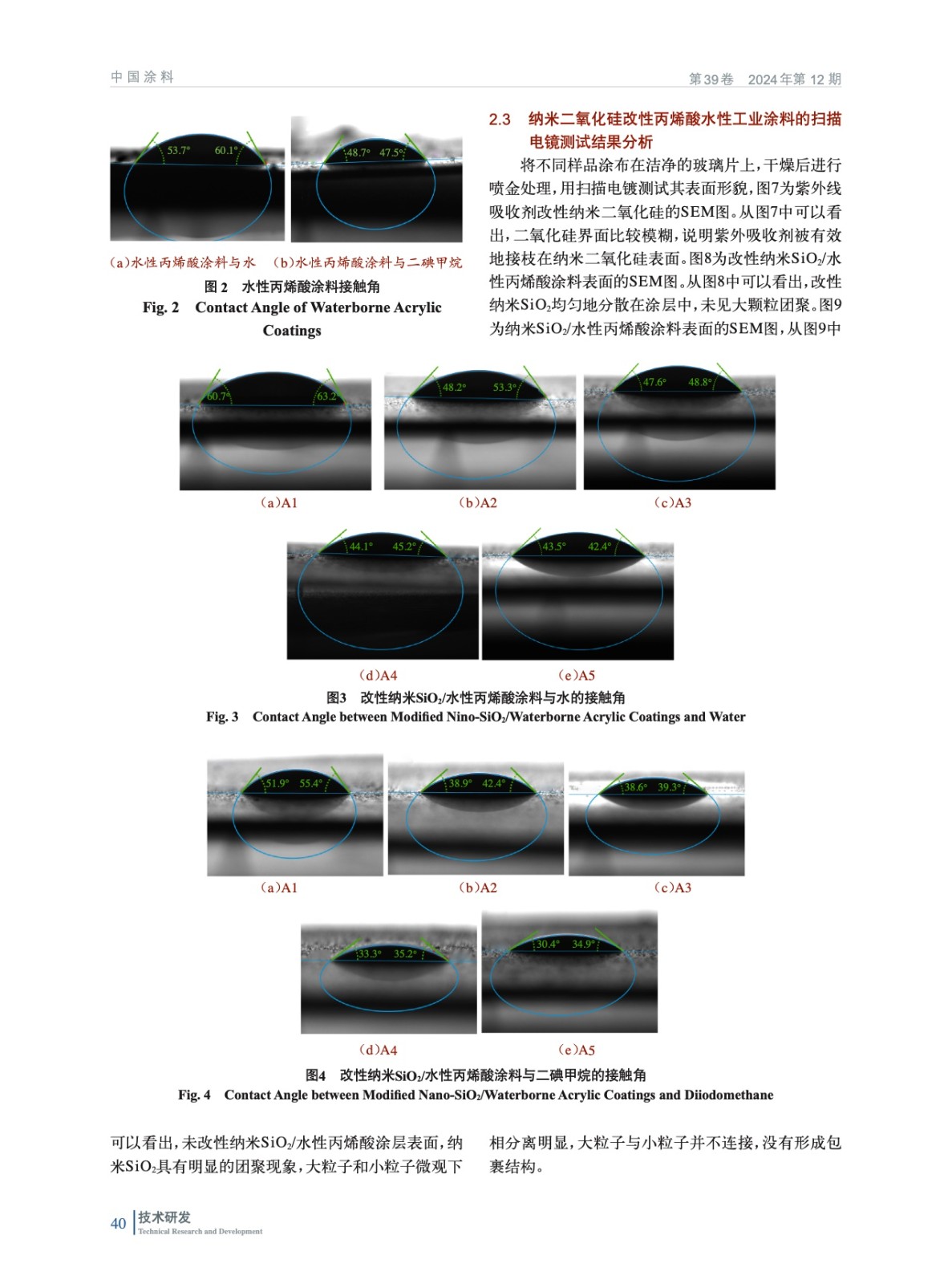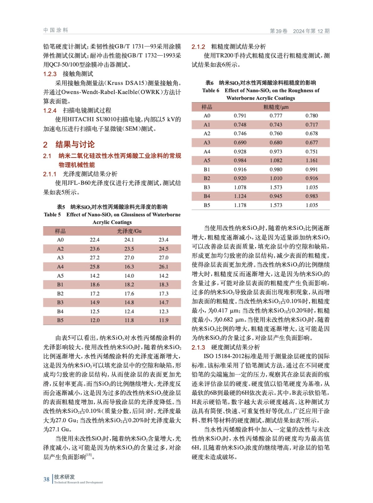 摘要:研究旨在制備負載紫外線的納米二氧化硅(SiO2)改性的水性丙烯酸工業涂料,并研究改性納米SiO2含量對涂料性能的影響。采用了接觸角儀、掃描電鏡、常規物理機械性能等對多種手段對涂膜進行表征。研究結果表明,隨著改性納米SiO2含量的增加,涂層具有較好的常規物理機械性能,并且光澤度有所提高。這表明,改性納米SiO2對涂料的增韌和增強效果顯著,能夠改善涂層的常規物理機械性能和表面性能。然而,當改性納米SiO2含量達到一定值時,增加含量并不能繼續提高涂層的光澤度,甚至會導致涂層表面性能變差。這是因為,改性納米SiO2在涂層中的分散度和填充效果受到含量的影響,達到一定含量后,納米SiO2顆粒之間的互相聚集和堆積現象會加劇,使涂層的表面質量受到損害。