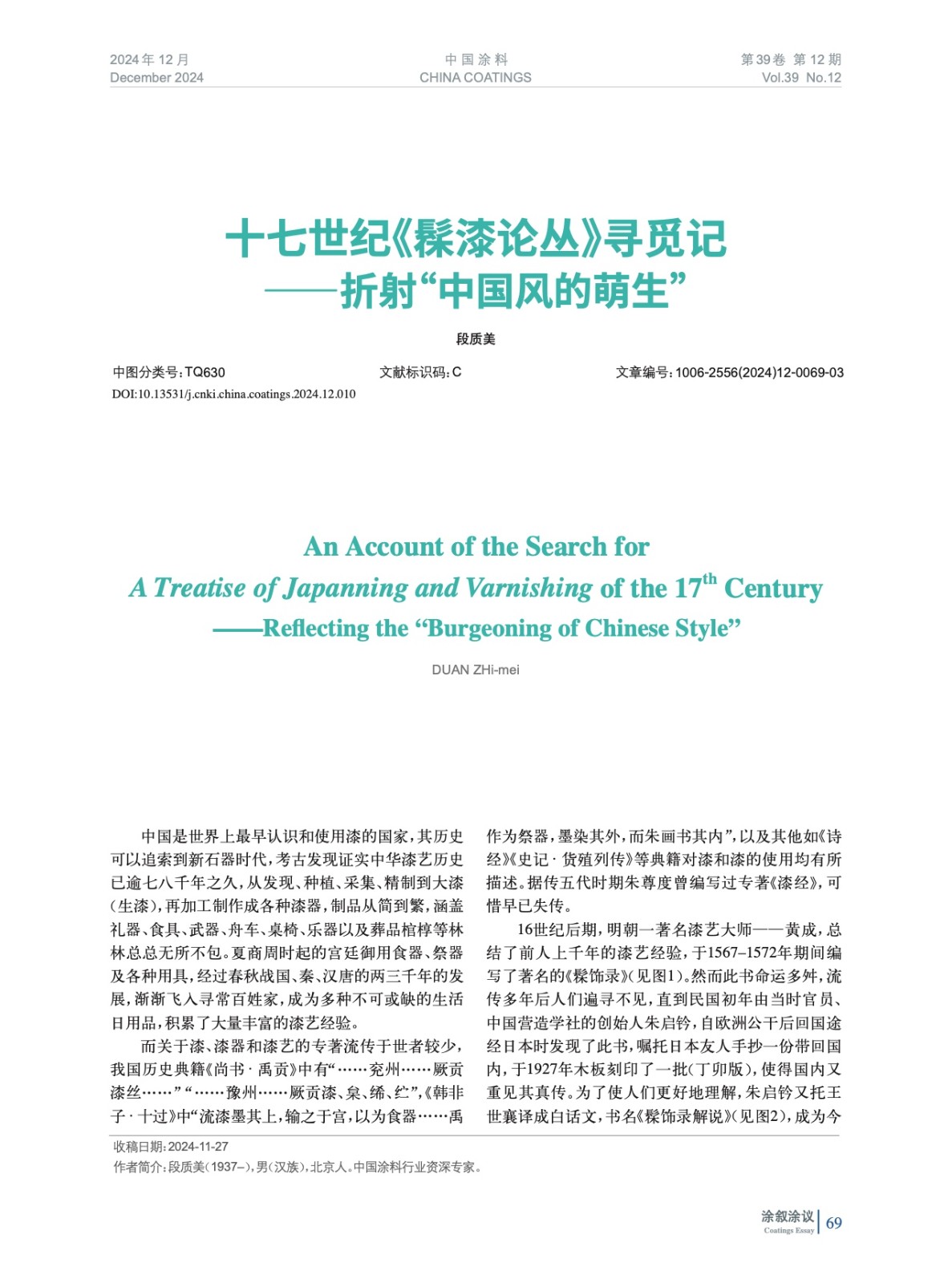 本文系作者@段質美 授權中國涂料網發表,并經中國涂料網編輯,未經允許不得轉載,如需轉載請聯系chinacoatingnet@vip.163.com