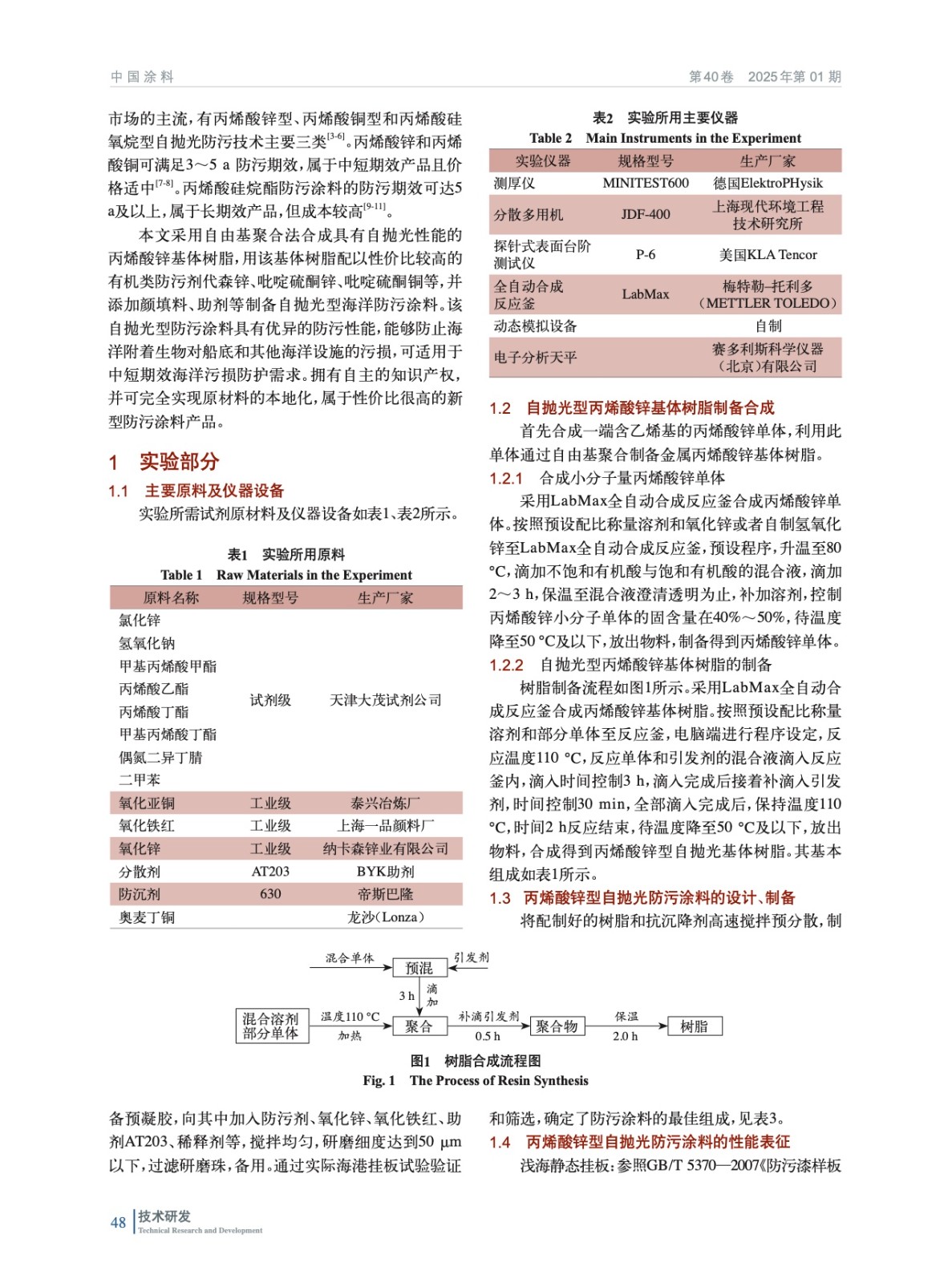 丙烯酸鋅酯基自拋光海洋防污涂料制備及性能