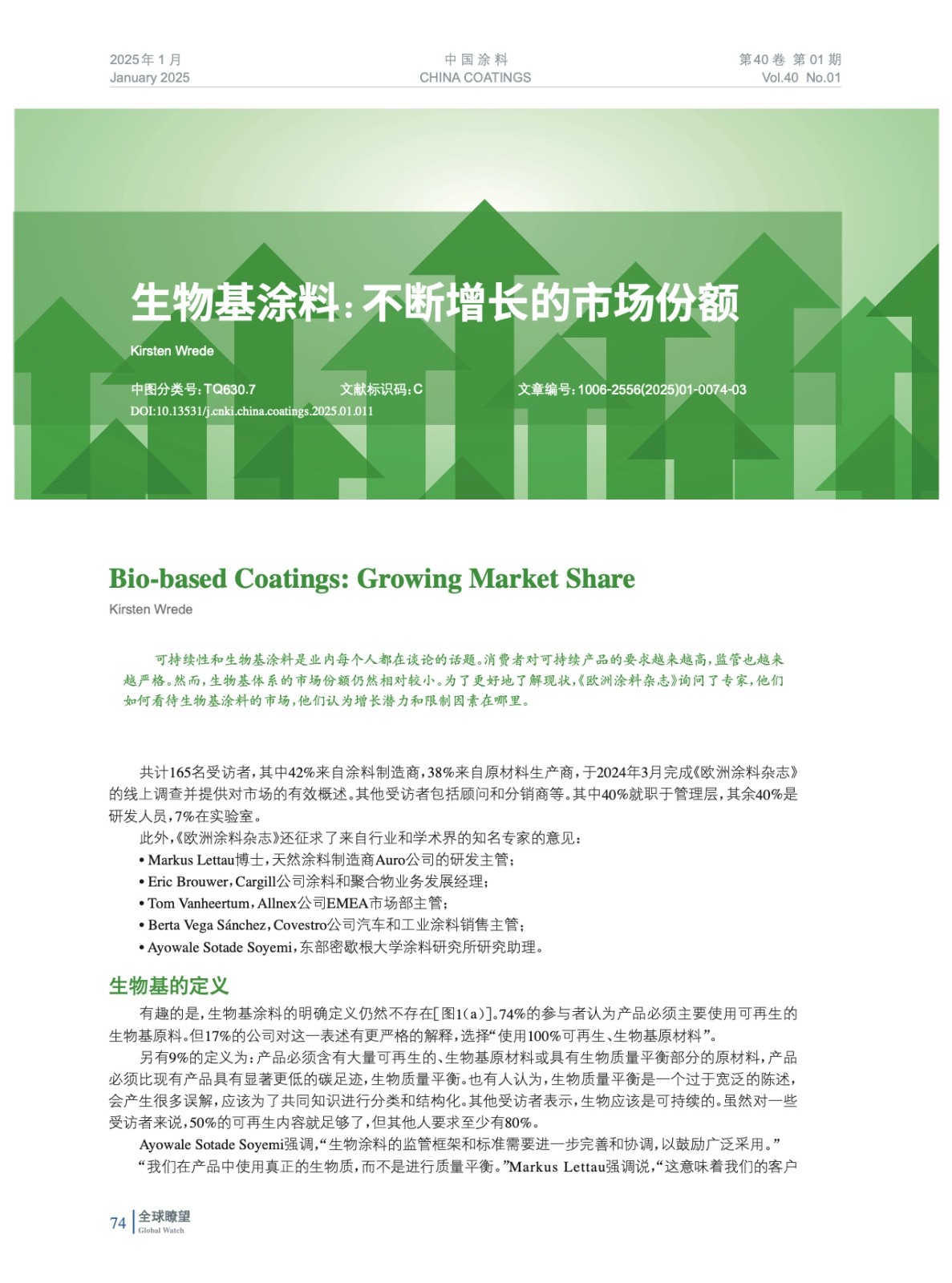 編者按:可持續性和生物基涂料是業內每個人都在談論的話題。消費者對可持續產品的要求越來越高,監管也越來越嚴格。然而,生物基體系的市場份額仍然相對較小。為了更好地了解現狀,《歐洲涂料雜志》詢問了專家,他們如何看待生物基涂料的市場,他們認為增長潛力和限制因素在哪里。