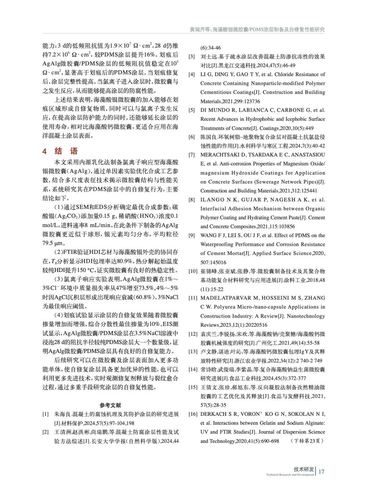 海藻酸銀微膠囊/PDMS涂層制備及自修復性能研究