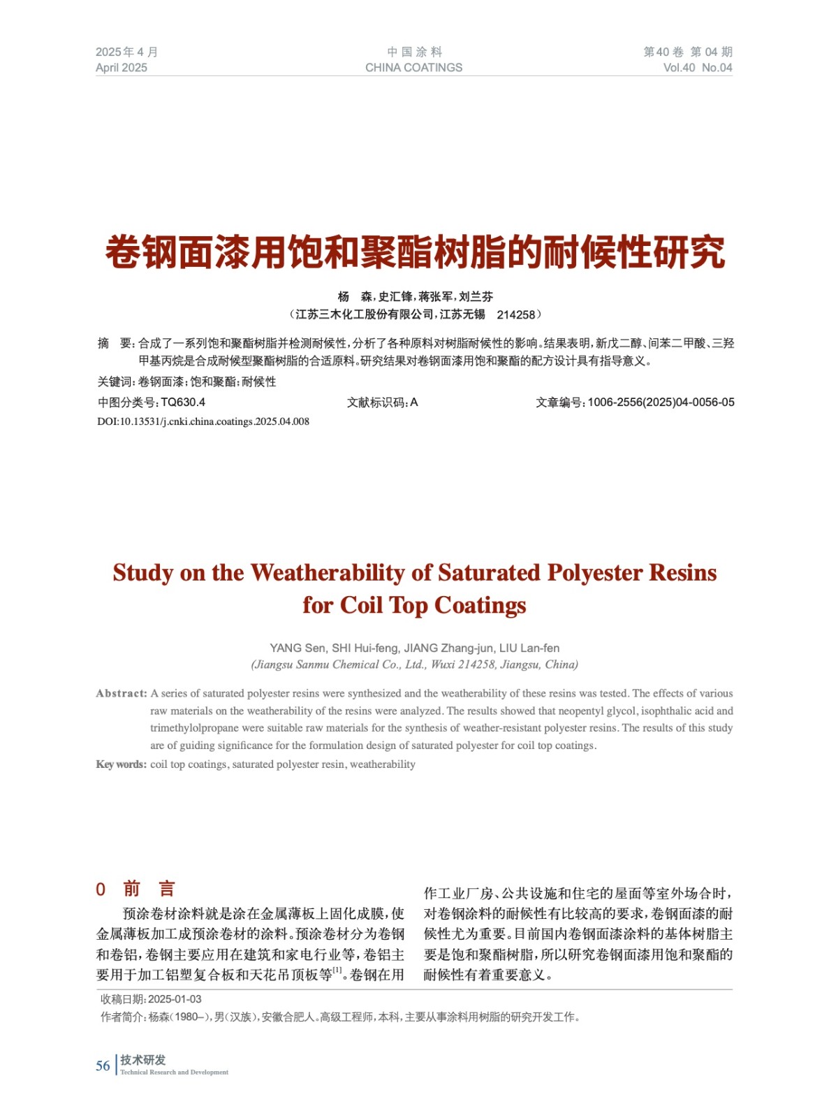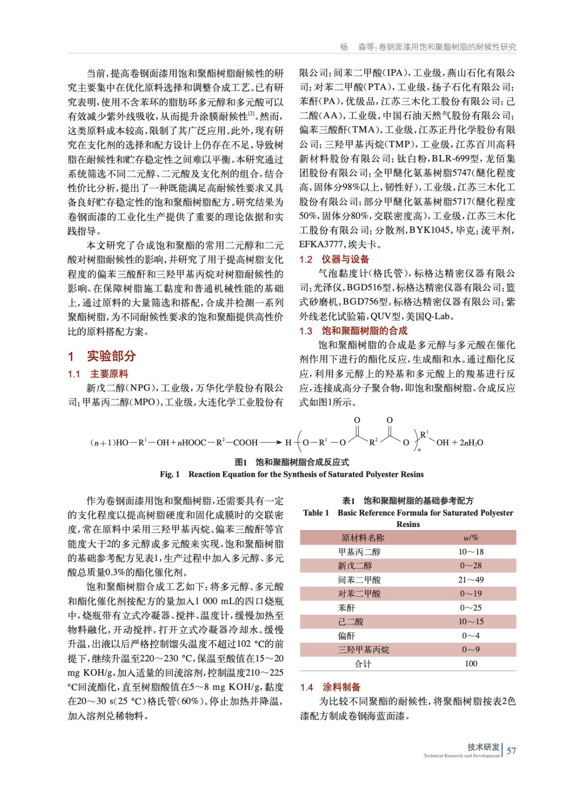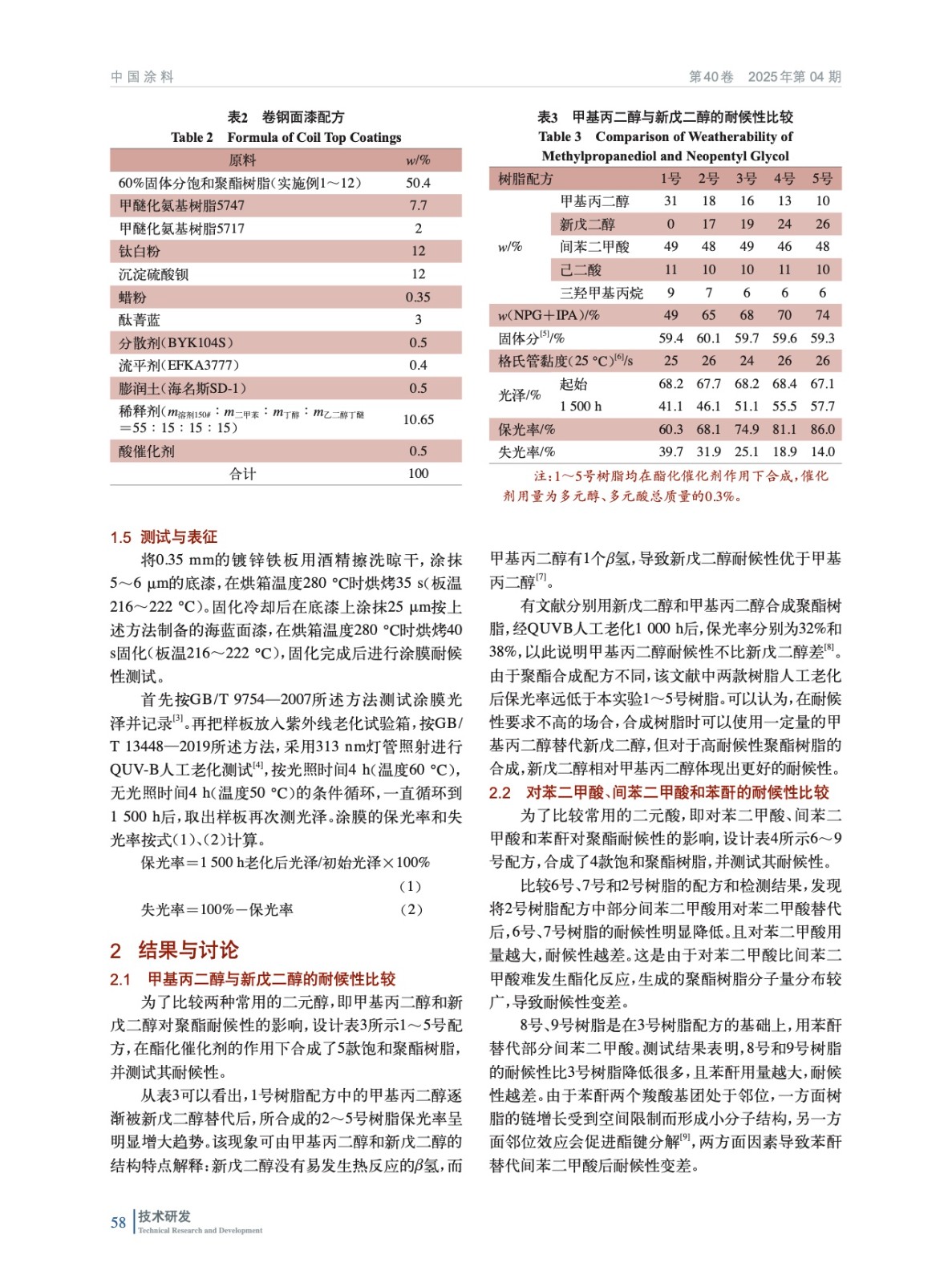 卷鋼面漆用飽和聚酯樹(shù)脂的耐候性研究