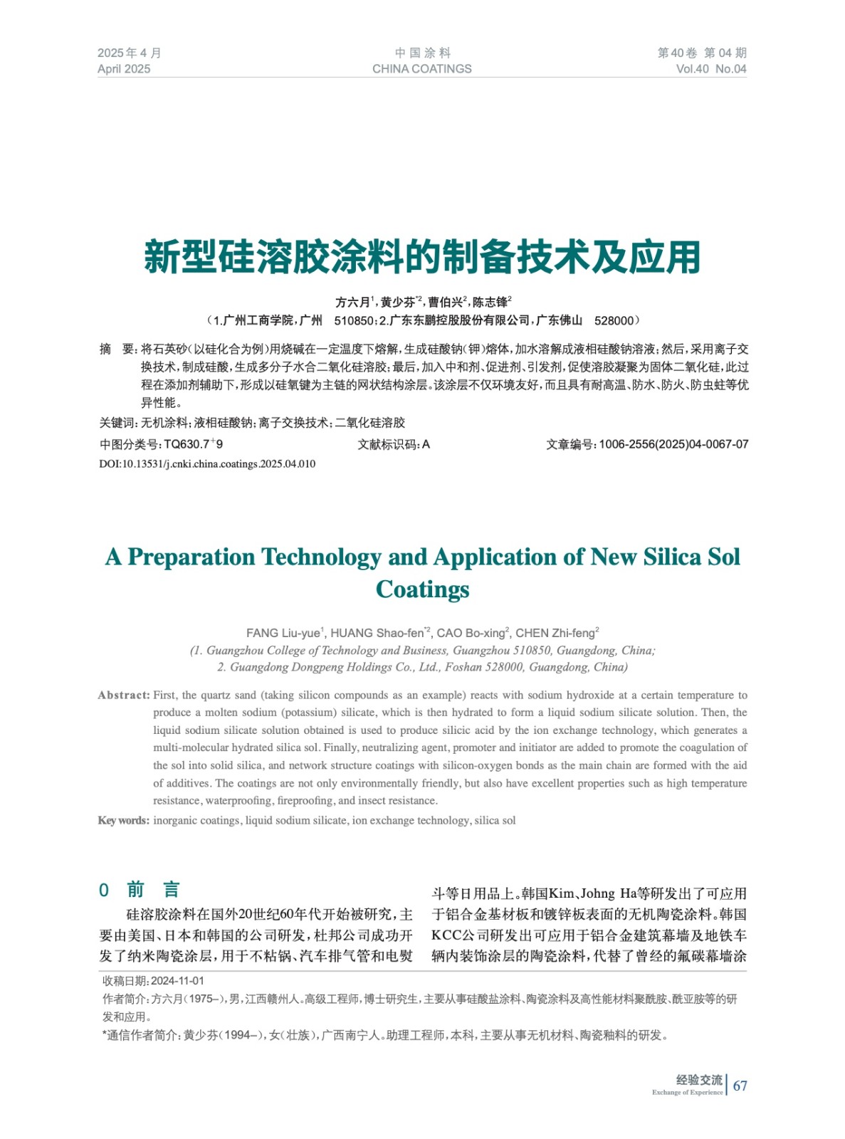 本文系作者@方六月,黃少芬,曹伯興,陳志鋒 授權中國涂料網發(fā)表,并經中國涂料網編輯,未經允許不得轉載,如需轉載請聯(lián)系chinacoatingnet@vip.163.com
