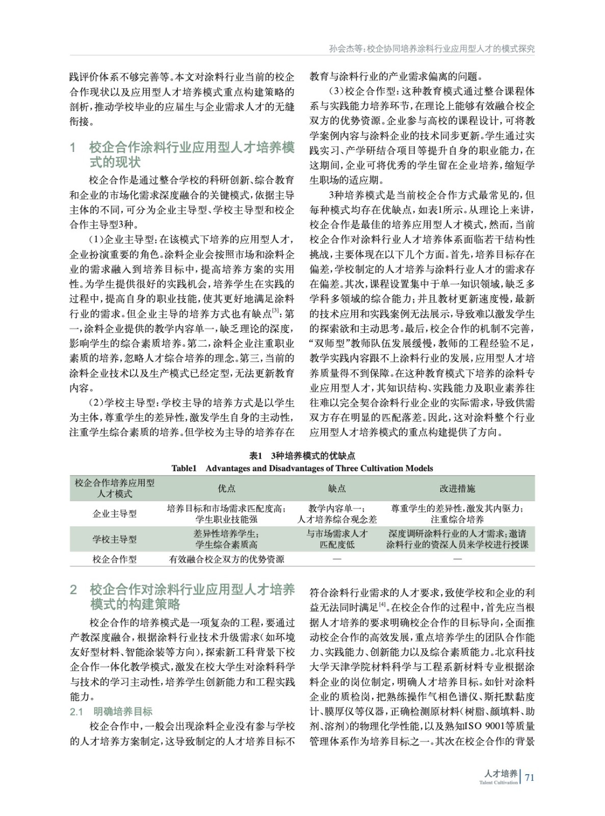 分析了目前涂料行業應用型人才培養模式的優缺點,闡述了校企合作模式在培養應用型人才的構建策略以及評價體系機制的研究,為校企協同培養涂料行業應用型人才提供了借鑒。