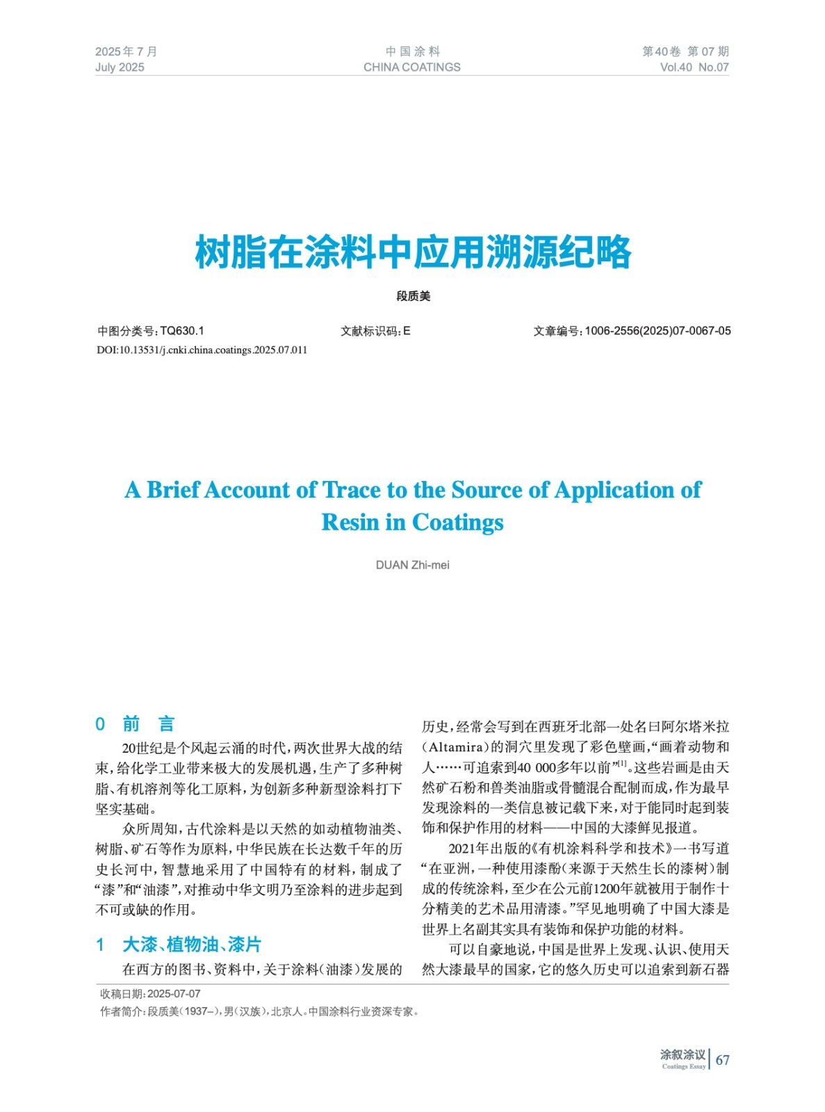 樹脂在涂料中應(yīng)用溯源紀(jì)略