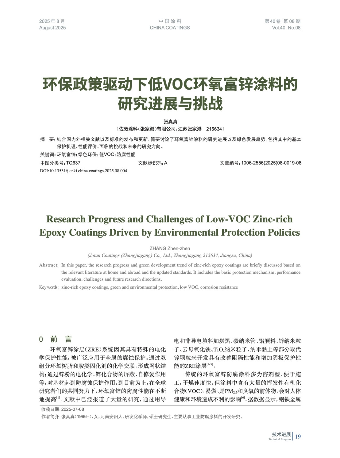 結合國內外相關文獻以及標準的發布和更新,簡要討論了環氧富鋅涂料的研究進展以及綠色發展趨勢。包括其中的基本保護機理、性能評價、面臨的挑戰和未來的研究方向。
