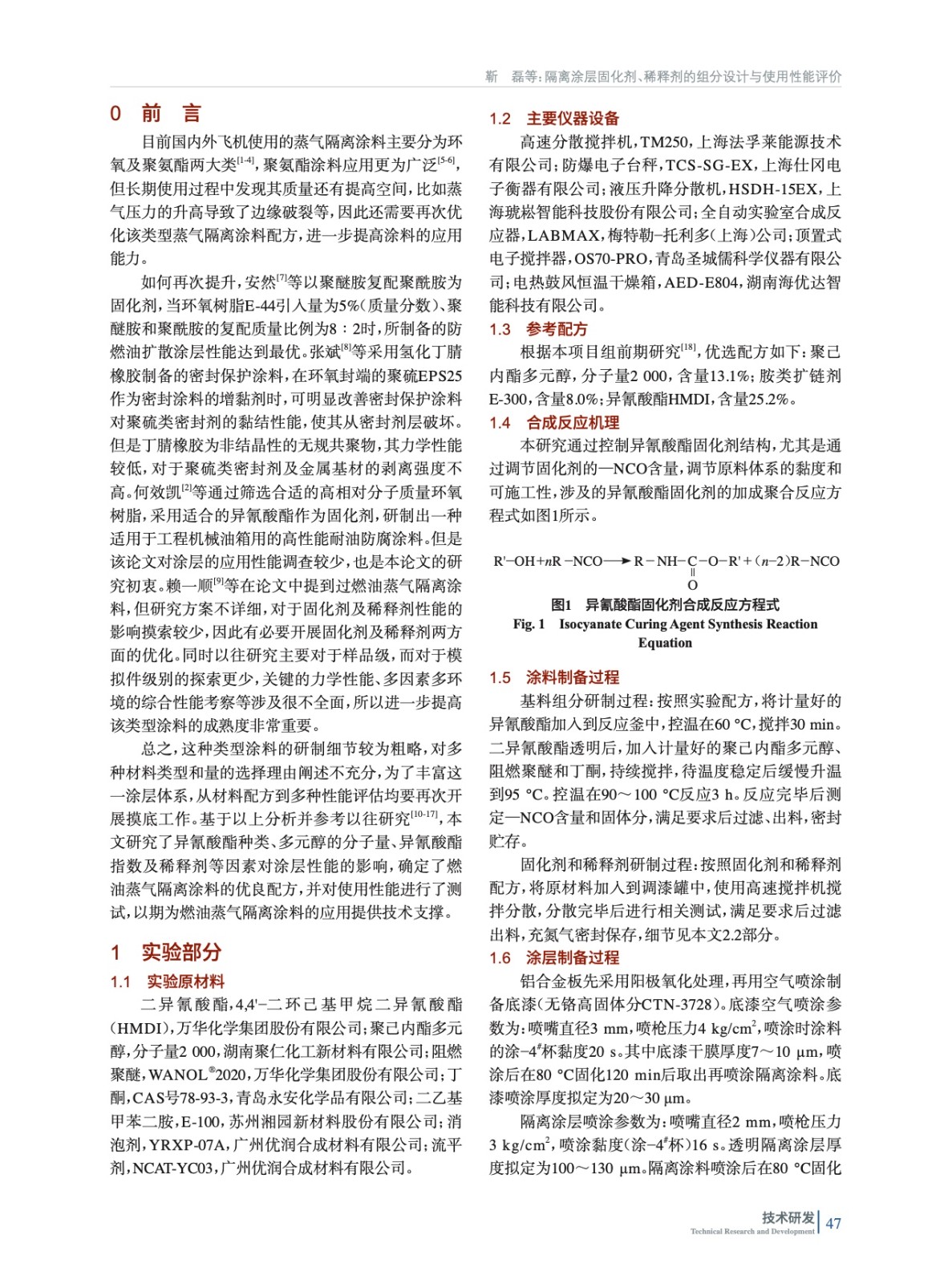 隔離涂層固化劑、稀釋劑的組分設計與使用性能評價