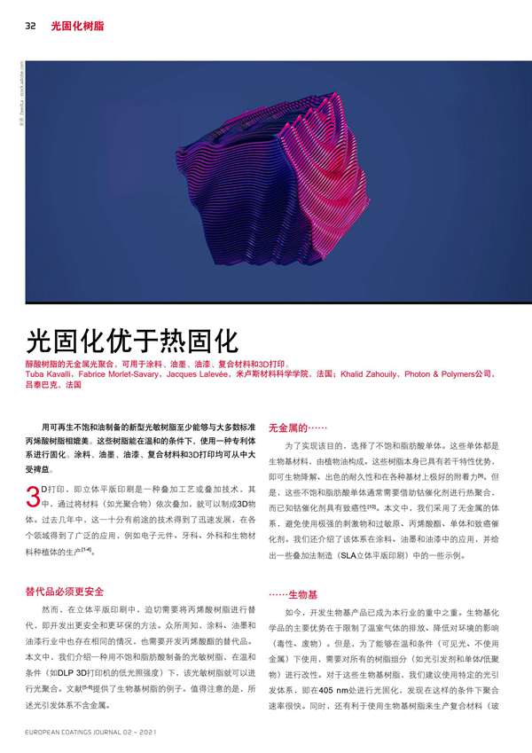 醇酸樹脂的無金屬光聚合,可用于涂料、油墨、油漆、復合材料和3D打印