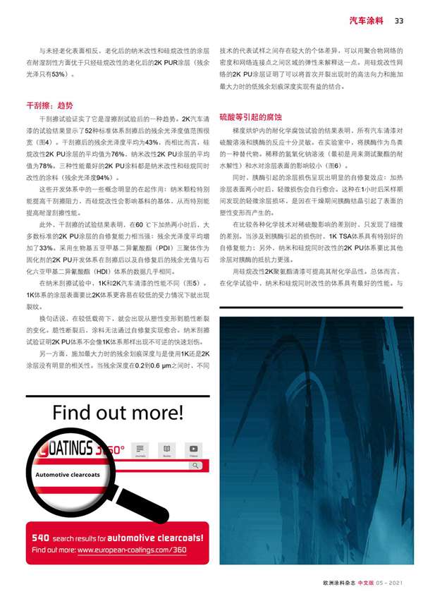 對95種汽車清漆體系進行了干/濕刮擦試驗(老化前后)和耐化學品試驗。該基準研究的試驗揭示了各體系之間存在巨大的差異。