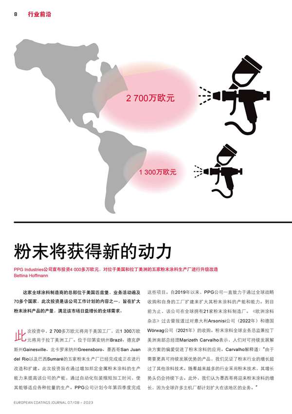 PPG Industries公司宣布投資,對五家粉末涂料生產廠進行升級改造