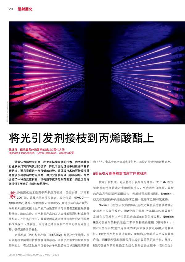 低遷移、低危害紫外線體系的新LED固化方法