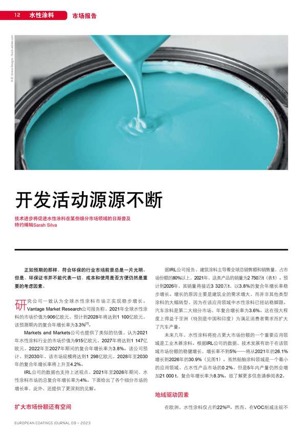 技術(shù)進(jìn)步將促進(jìn)水性涂料在某些細(xì)分市場(chǎng)領(lǐng)域的日漸普及