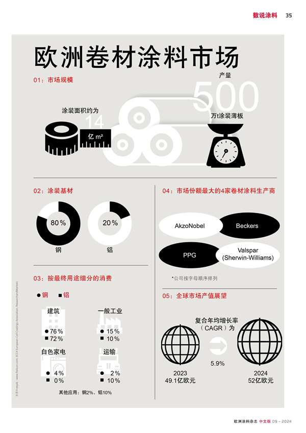 市場規(guī)模:涂裝面積約為14億m2,產(chǎn)量500萬t涂裝薄板。