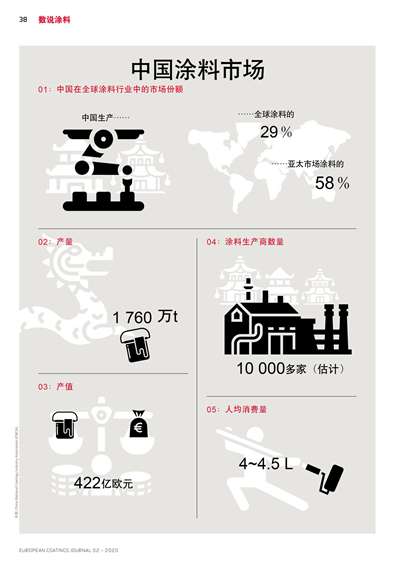 中國在全球涂料行業中的市場份額:全球涂料的29%,亞太市場涂料的58%