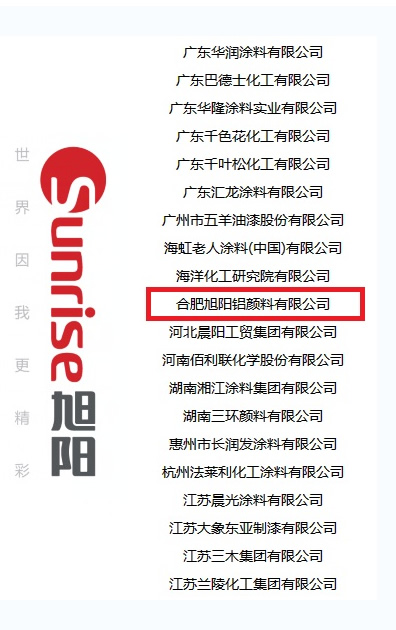 本次旭陽榮獲“中國涂料工業(yè)百年百強企業(yè)” 稱號,是上下游合作伙伴們一直以來對旭陽關(guān)心和支持的結(jié)果!旭陽人將會借此契機,繼續(xù)努力拼搏,為客戶提供質(zhì)優(yōu)價廉的鋁銀漿系列產(chǎn)品,為中國的涂料事業(yè)貢獻力量,打造中國鋁顏料的民族品牌!