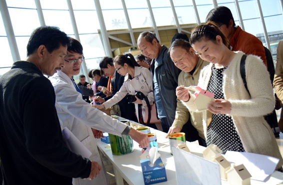 圖:會(huì)議代表體驗(yàn)晨陽水漆產(chǎn)品