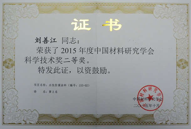 近日,由晨陽水漆研發的“水性防腐涂料”項目(編號:153-02)榮獲2015年度中國材料研究學會科學技術獎二等獎。該項目有效解決了長期以來中國工業防腐用水性涂料依靠進口的現狀,以及水性涂料耐鹽霧性差、附著力差的關鍵技術問題。
