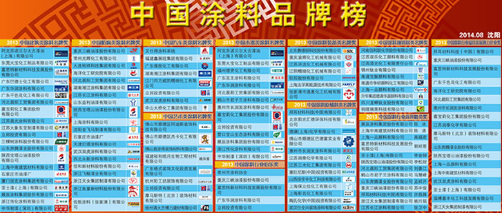 中國涂料顏填料類名牌獎獲獎品牌: