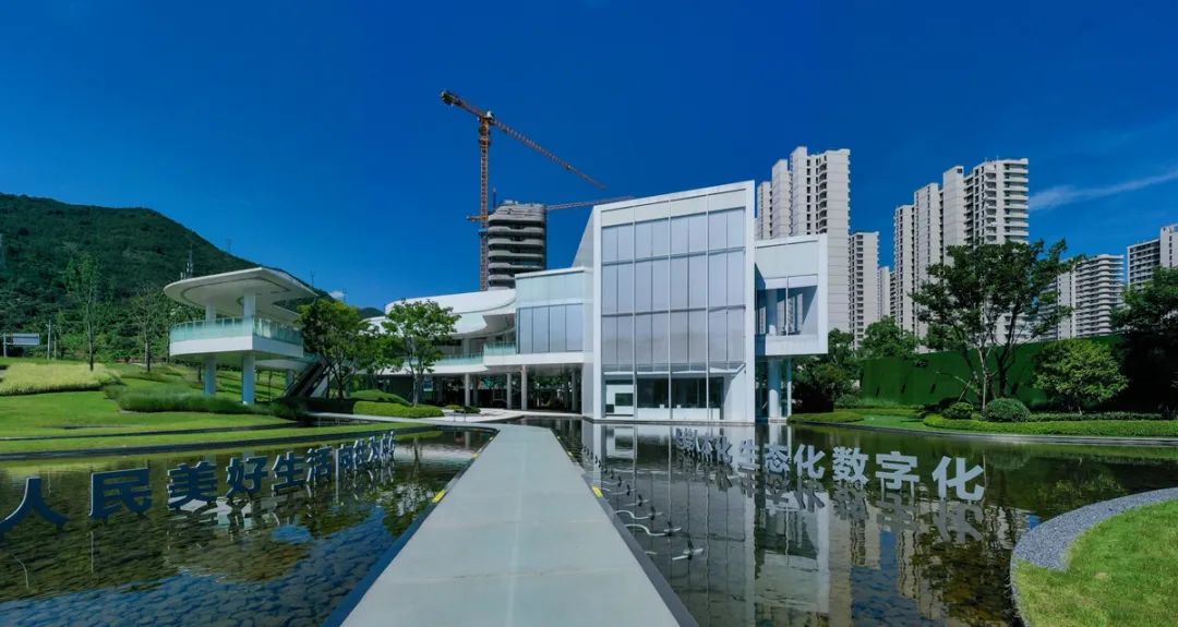 鳥(niǎo)瞰麗水大家·未來(lái)社區(qū)體驗(yàn)中心,斐波那契數(shù)列所呈現(xiàn)的“黃金螺旋曲線”,連通在城市街道與靈山景區(qū)之間,也鏈接著原生與未來(lái)之路。