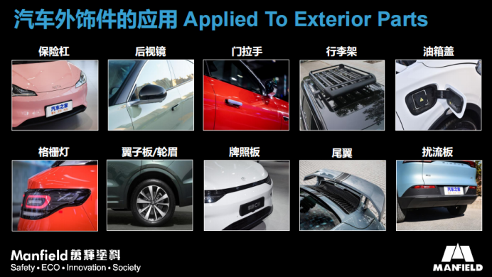 萬(wàn)輝汽車內(nèi)外飾涂料被廣泛應(yīng)用于納米BOX的前后保險(xiǎn)杠、尾翼、行李架和裝飾條等部件,并為之提供了完美的顏色匹配、高端涂層質(zhì)感與優(yōu)異的涂料性能。