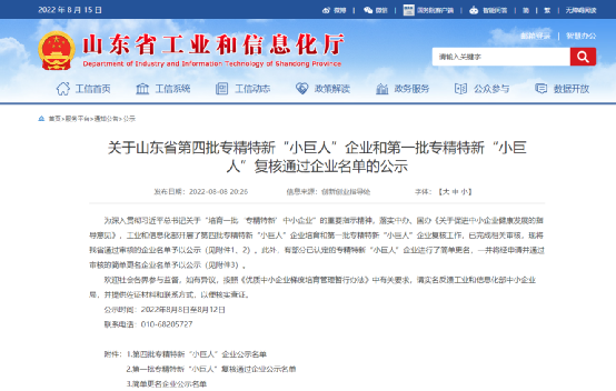 8月8日,山東省工信廳公示了我省通過審核的第四批國家級專精特新“小巨人”企業名單,山東奔騰漆業股份有限公司成功入選。