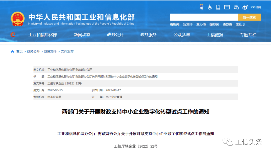 據(jù)工信部8月17日消息,工信部、財政部聯(lián)合印發(fā)開展財政支持中小企業(yè)數(shù)字化轉(zhuǎn)型試點工作的通知。