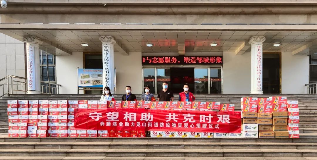 連日來,疫情防控牽動著全市人民的心,各鎮、街道、社區的工作人員與醫護人員夜以繼日、不辭辛苦,奮戰在抗疫一線。奔騰漆業履行社會責任,踐行初心使命,以“守望相助,共克時艱”為主題,傾情助力疫情防控,全力支持政府疫情防控工作。