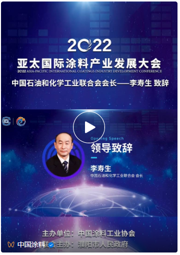 11月2日,以“科技創新,綠色發展”為主題、由中國涂料工業協會、濮陽市人民政府聯合主辦的“2022年亞太國際涂料產業發展大會”以網絡直播形式正式拉開帷幕,大咖云集,干貨滿滿,吸引了數以百萬計的涂料、涂裝及上下游人士在線觀看。
