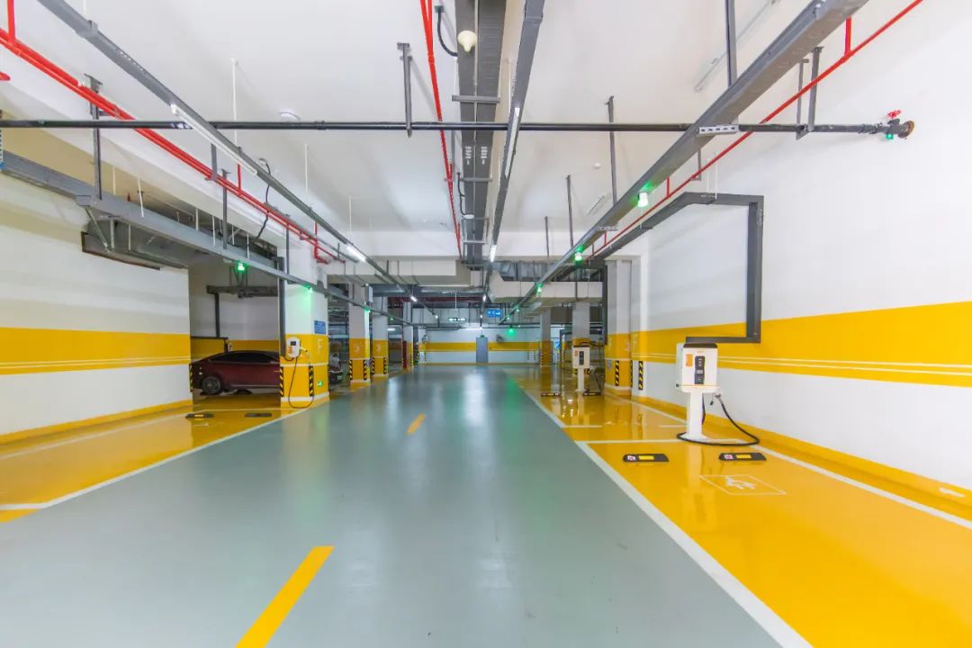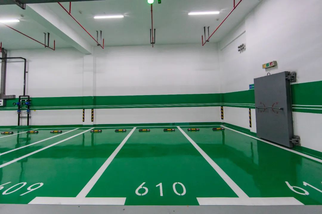 考慮到行車道走車頻繁,對地坪的耐磨性及強度要求相對較高;為保證行人安全和降低行車噪音,且具備一定的防滑效果,“傳化漆”品牌為臨平體育中心地下車庫鋪設耐磨防滑的環(huán)氧地坪涂料,設計厚度1~2mm。