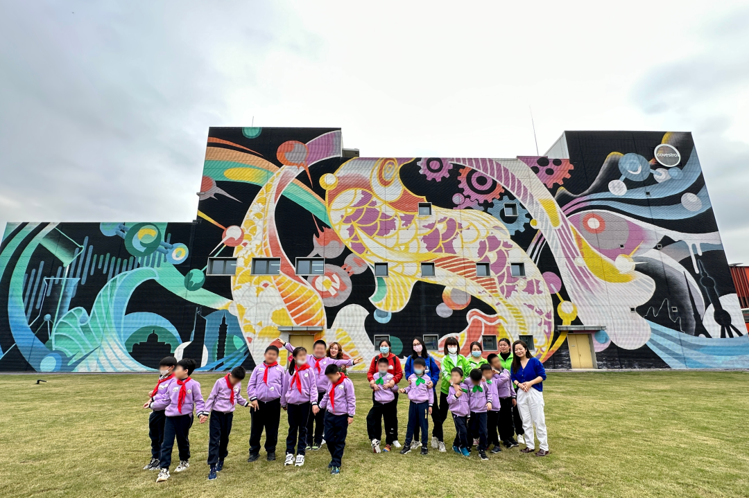 在參觀創新樓的涂鴉墻時,擅長繪畫和觀察的星寶們駐足停留,似乎不愿離開。當被問及原因時,才知道他們原來是聯想到了青聰泉校舍內的易清潔涂鴉墻。沒錯,2021年科思創以創新的材料解決方案為孩子們打造的一面蔚藍大海易清潔墻。五年來的溫暖陪伴,細節之處無不體現著科思創與星寶們心與心的碰撞,愛與愛的交融!