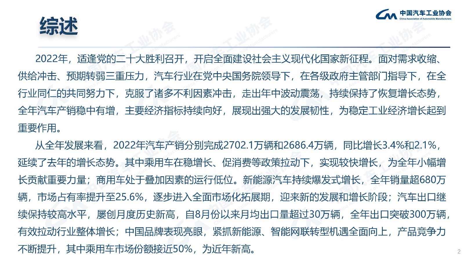 據中國汽車工業協會統計分析,2022年,汽車產銷穩中有增,主要經濟指標持續向好,展現出強大的發展韌性,為穩定工業經濟增長起到重要作用。