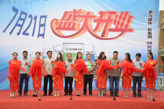 7月21日,晨陽(yáng)水漆山西省晉中市旗艦店盛大開業(yè),執(zhí)行總裁楊磊、市場(chǎng)管理中心副總經(jīng)理唐健、旗艦店總經(jīng)理隰凱、銀河之語(yǔ)裝飾公司總經(jīng)理李鵬飛等出席典禮并剪彩。