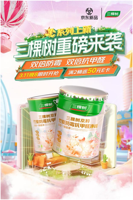 3月11日晚8點(diǎn),國內(nèi)涂料領(lǐng)軍企業(yè)三棵樹與京東聯(lián)合發(fā)布,JC系列新品JC竹炭防霉抗甲醛低氣味五合一墻面漆正式登陸京東平臺(tái)全球首發(fā)。此次新品上市更聯(lián)合京東發(fā)起"買漆種樹"公益計(jì)劃,通過"產(chǎn)品+公益"雙軌并行的創(chuàng)新模式,踐行企業(yè)綠色使命。