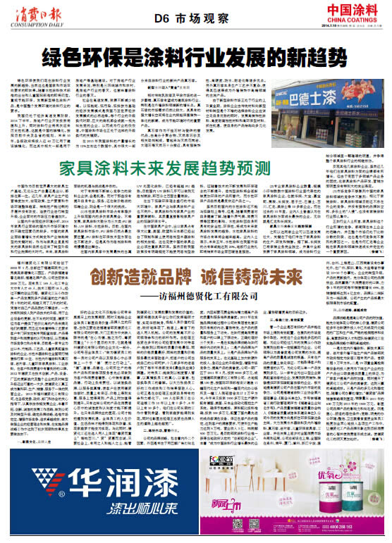 創新造就品牌誠信鑄就未來——訪福州德賢化工有限公司
