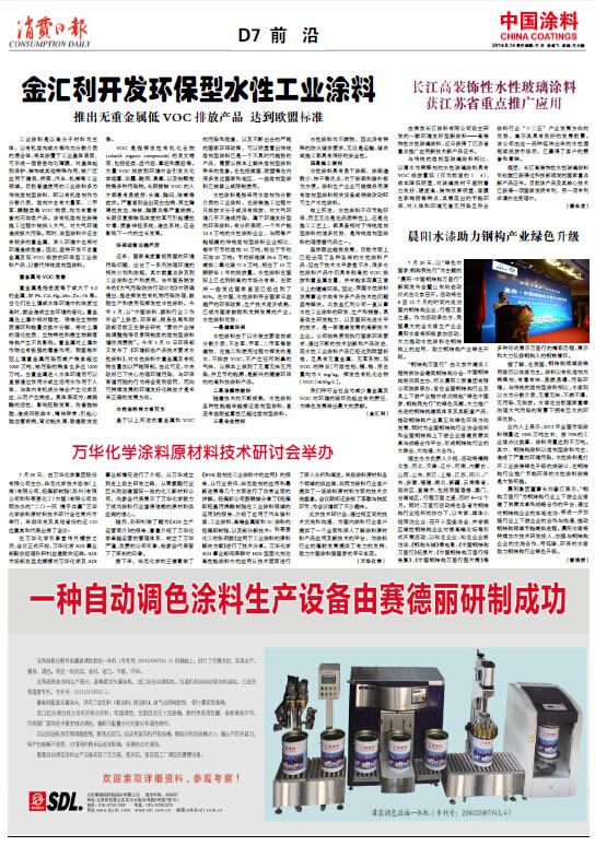 金匯利開發環保型水性工業涂料