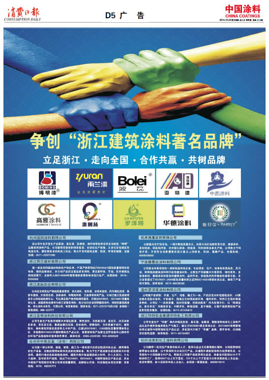 《中國涂料報》(電子版)的一切內容(包括但不限于文字、圖片、PDF、圖表、標志、標識、商標、版面設計、專欄目錄與名稱、內容分類標準以及為讀者提供的任何信息)僅供中國涂料信息網讀者閱讀、學習研究使用,未經中國涂料雜志社有限公司及/或相關權利人書面授權,任何單位及個人不得將《中國涂料報》(電子版)所登載、發布的內容用于商業性目的,包括但不限于轉載、復制、發行、制作光盤、數據庫、觸摸展示等行為方式,或將之在非本站所屬的服務器上作鏡像。否則,中國涂料雜志社有限公司將采取包括但不限于網上公示、向有關部門舉報、訴訟等一切合法手段,追究侵權者的法律責任。