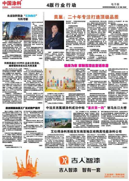《中國涂料報》(電子版)的一切內容(包括但不限于文字、圖片、PDF、圖表、標志、標識、商標、版面設計、專欄目錄與名稱、內容分類標準以及為讀者提供的任何信息)僅供中國涂料信息網讀者閱讀、學習研究使用,未經中國涂料雜志社有限公司及/或相關權利人書面授權,任何單位及個人不得將《中國涂料報》(電子版)所登載、發布的內容用于商業性目的,包括但不限于轉載、復制、發行、制作光盤、數據庫、觸摸展示等行為方式,或將之在非本站所屬的服務器上作鏡像。否則,中國涂料雜志社有限公司將采取包括但不限于網上公示、向有關部門舉報、訴訟等一切合法手段,追究侵權者的法律責任。